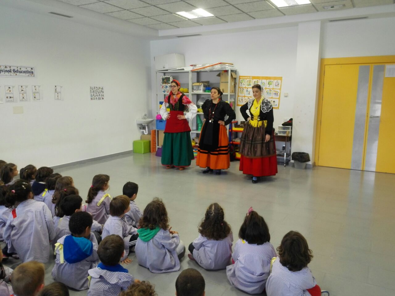 El 19 de Mayo de 2015, estuvimos pasando la mañana con los niños del colegio Fuentecillas. Les explicamos el vestuario, tocamos instrumentos (pito castellano, pandereta y castañuelas), cantamos y bailamos todos juntos.